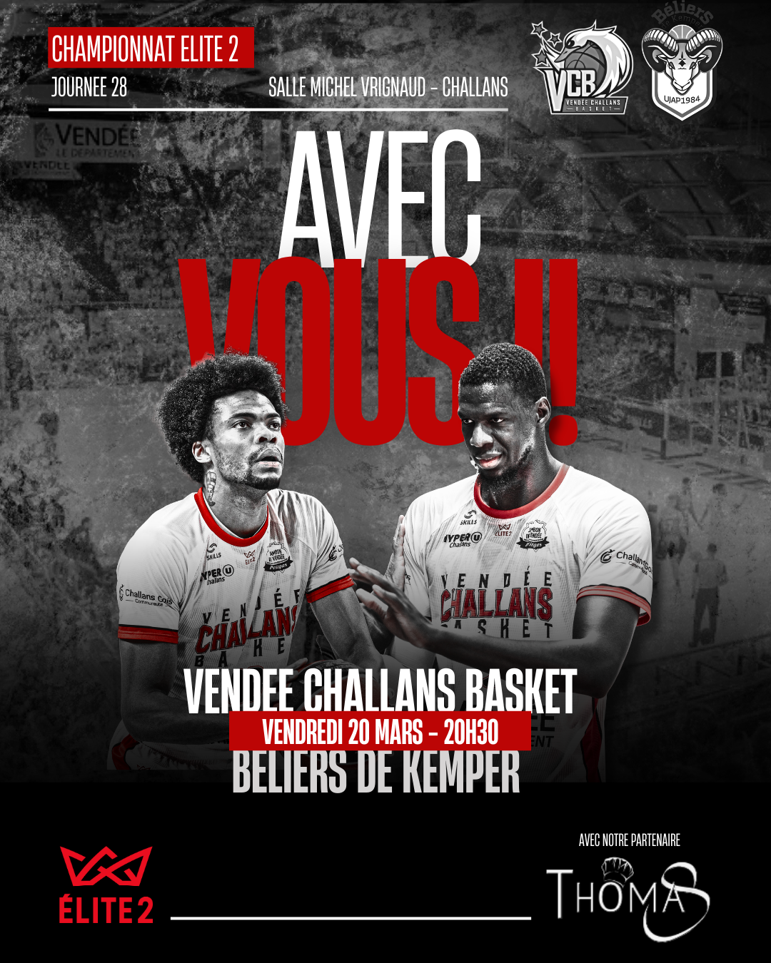 Réservez dès maintenant vos billets pour venir soutenir le VCB : challans-basket.billetterie-club.fr